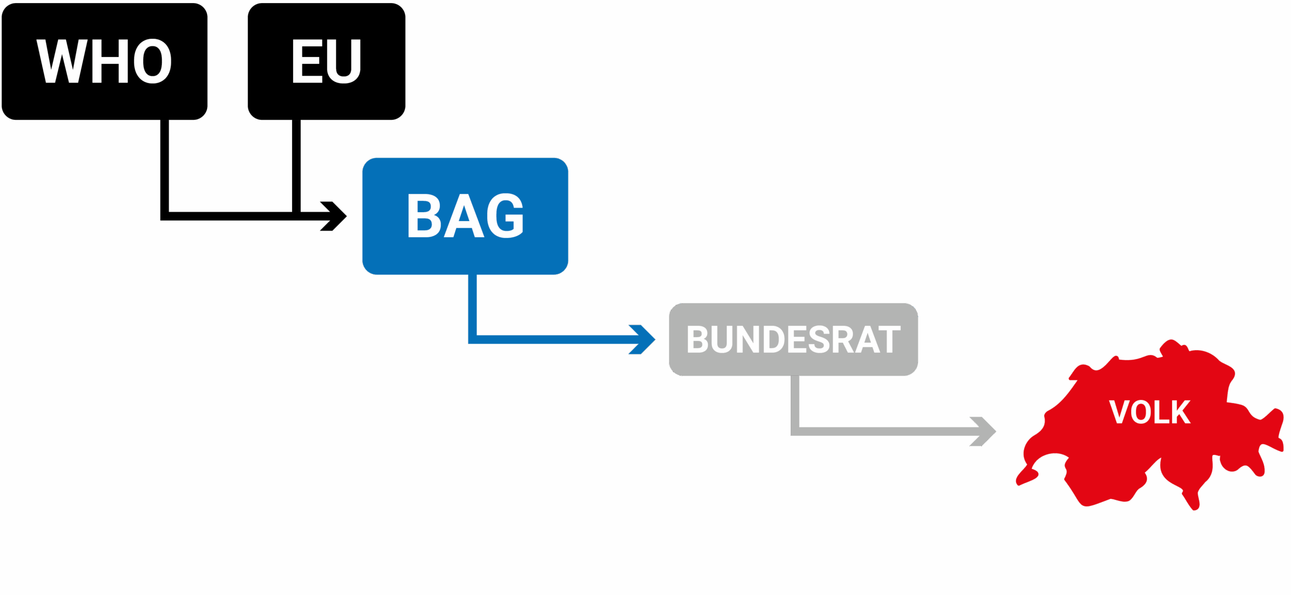Damit entsteht eine doppelte Bindung: Vorgaben aus Genf (WHO) und Brüssel (EU) beeinflussen direkt die Handlungen und den Handlungsspielraum der Schweiz.