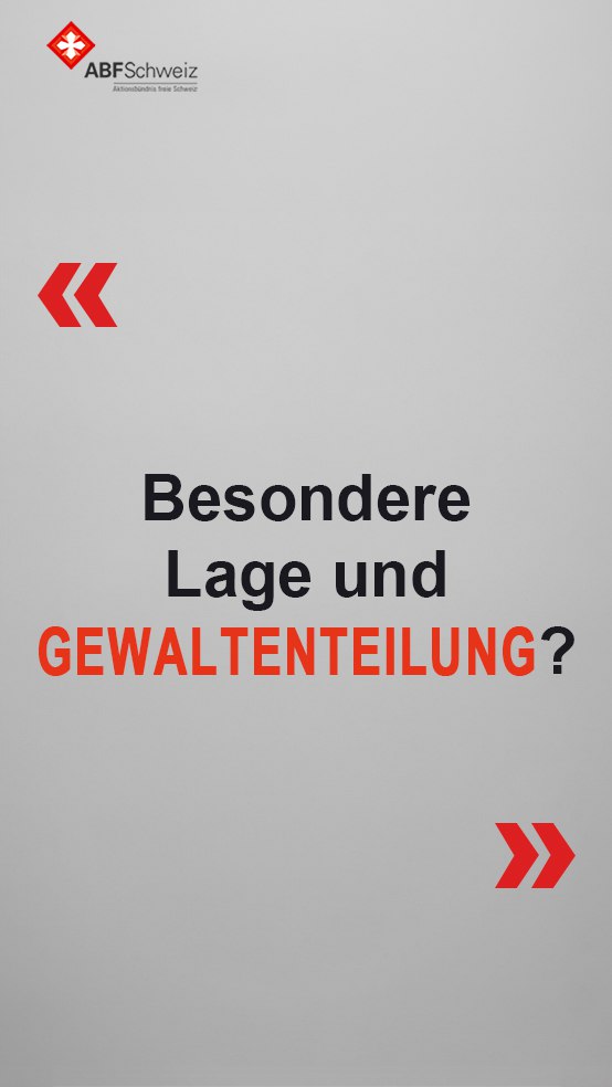 Eine Anhörung ist keine Mitbestimmung. In der «besonderen Lage» behält der Bundesrat letztendlich die alleinige Kompetenz, einschneidende Massnahmen wie Lockdowns oder Quarantänen anzuordnen – am Parlament vorbei. | |